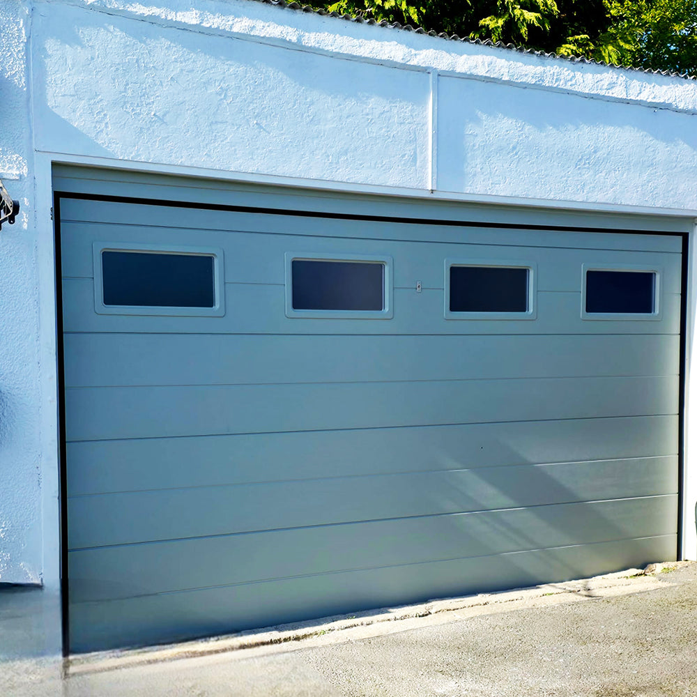 Sectional garage doors area popular, secure, and highly insulating option for residential and commercial garages, featuring panels that lift vertically and slide along the ceiling, allowing for maximum space in front of the garage. They are ideal for short driveways, offer excellent weather sealing, and can be customised with various designs, materials (steel, timber, aluminium), and electric operation.