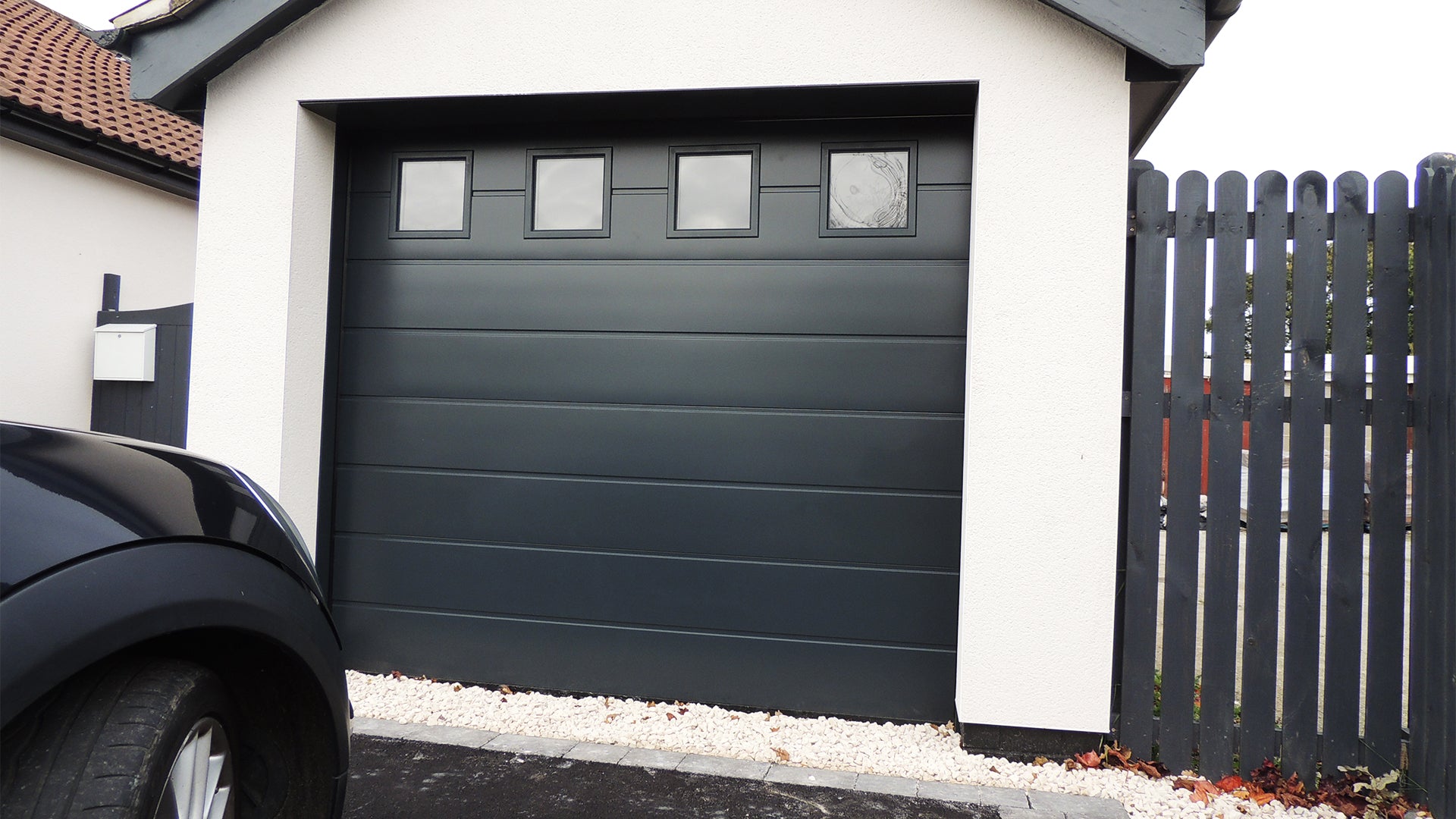 - Space Saving: Opens straight up, creating clear space in front and behind the door, perfect for driveways near paths or tight spaces.