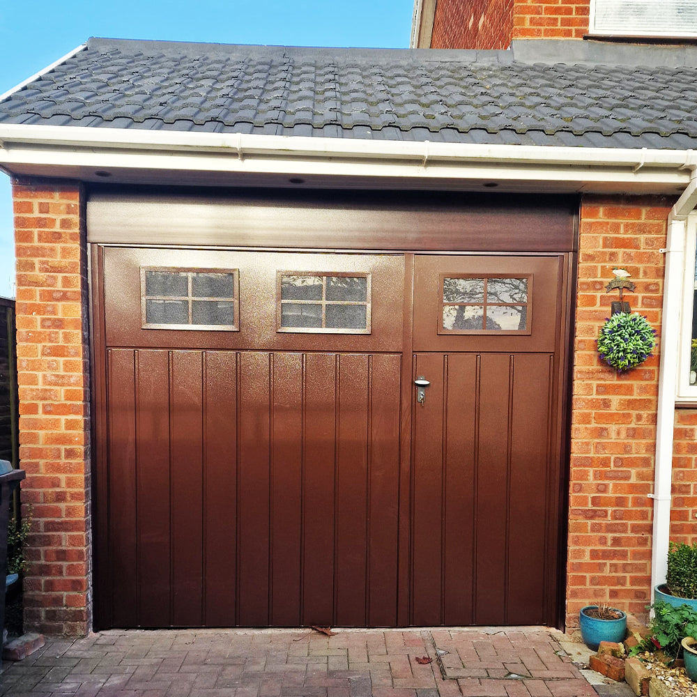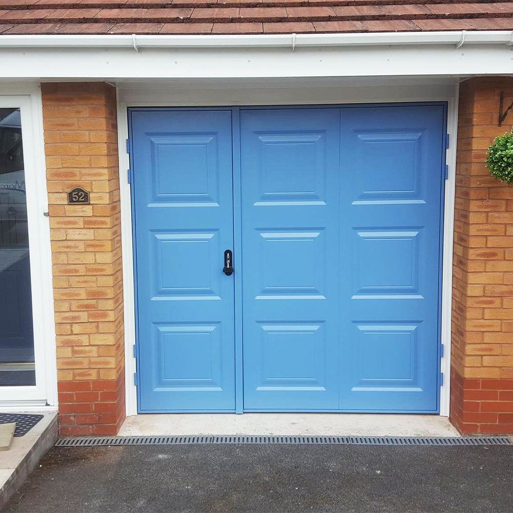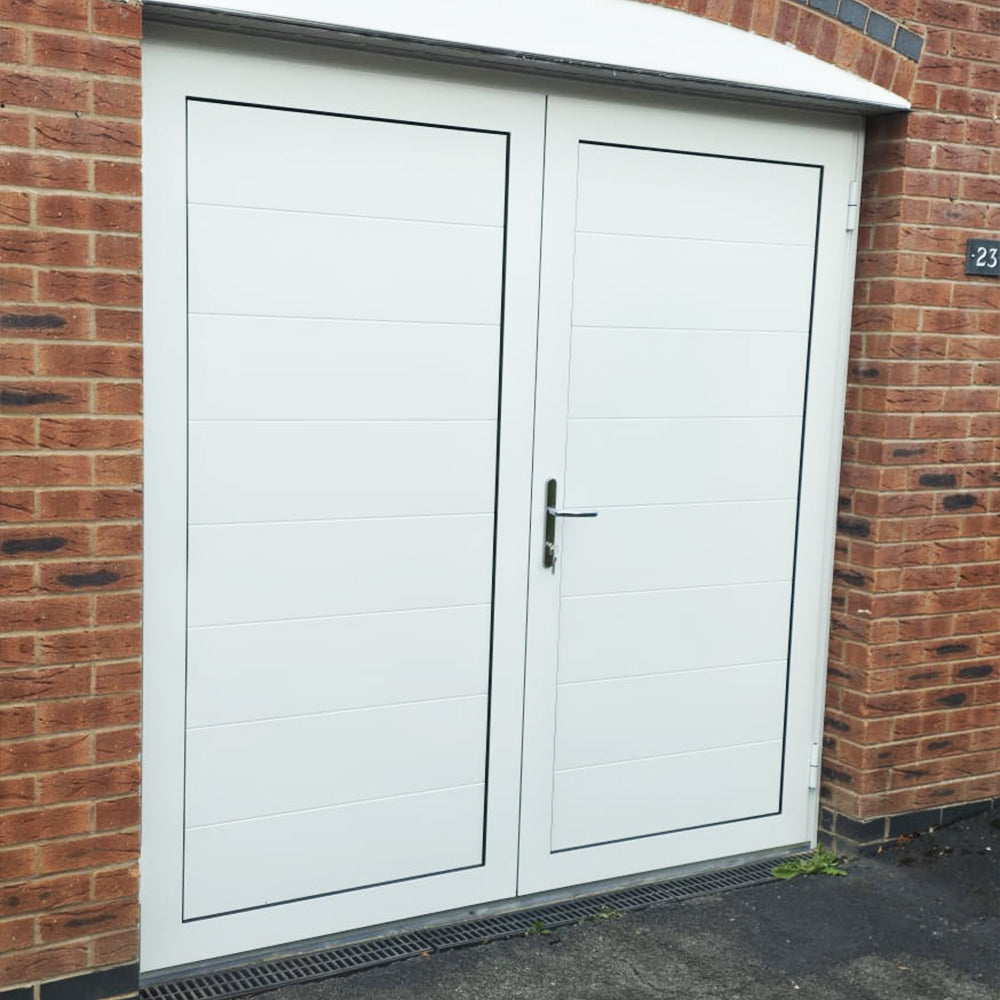 Side-hinged doors aretraditional, outward-swinging doors for garages or entryways, featuring two panels hinged at the sides like a standard door, offering easy pedestrian access, security, and insulation, ideal for multi-purpose garages used as rooms, available in various styles and materials, often with 50/50 or offset splits for convenience.